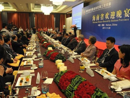 中非合作圓桌會議第二次大會在萬寧開幕。9日晚上,海南省政府在萬寧石梅灣舉行盛大招待晚宴,招待來自非洲的嘉賓及各界客人。