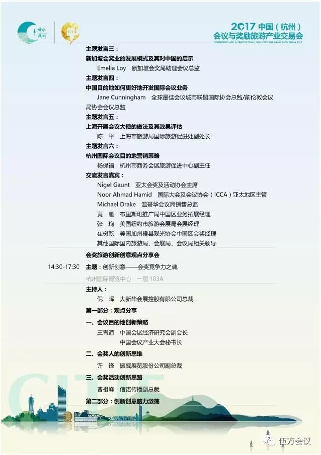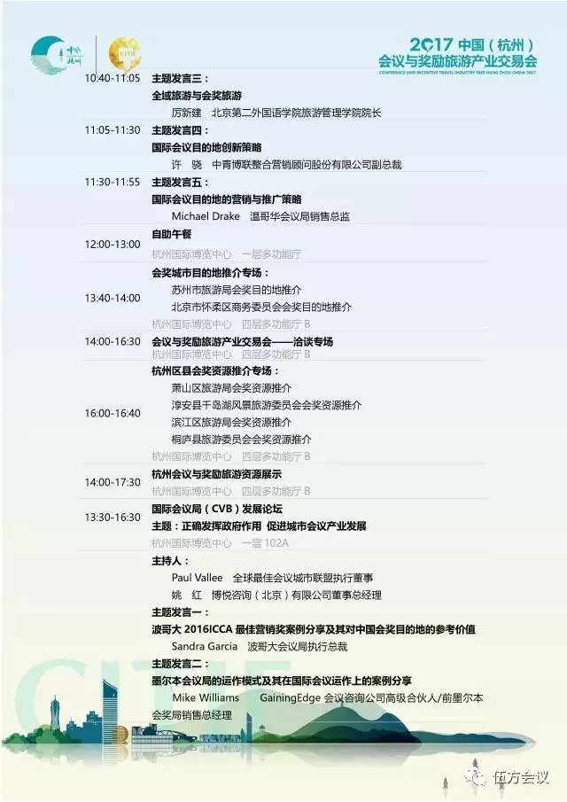 特別邀請到亞太、歐美、非洲等主要城市會(huì)議旅游局、駐華機(jī)構(gòu)及國際會(huì)獎(jiǎng)旅游組織相關(guān)負(fù)責(zé)人,相聚杭州,探討行業(yè)發(fā)展。
