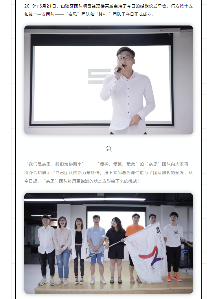 伍方資訊丨奈思團(tuán)隊(duì)、N+1團(tuán)隊(duì)授旗儀式
