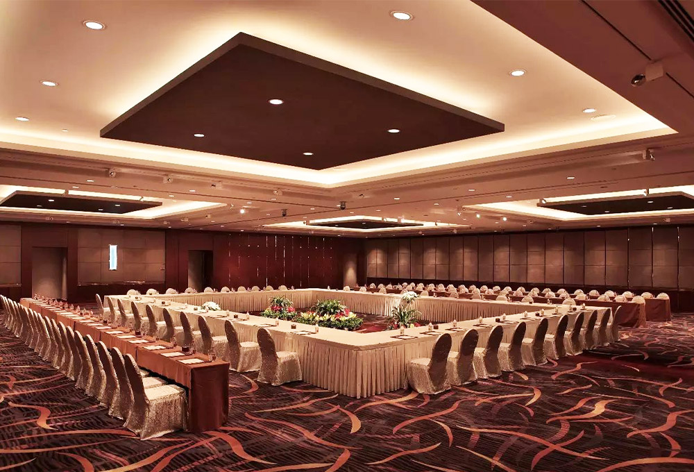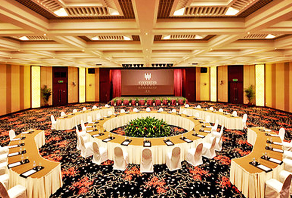 酒店擁有1780平方米的無柱式超大宴會(huì)廳、可容納千人的劇院式報(bào)告廳、城中獨(dú)有的環(huán)形峰會(huì)式會(huì)議廳、新聞發(fā)布廳和20多個(gè)不同規(guī)模的中小型多功能廳,為各種規(guī)格會(huì)議以及婚宴提供多樣化選擇。