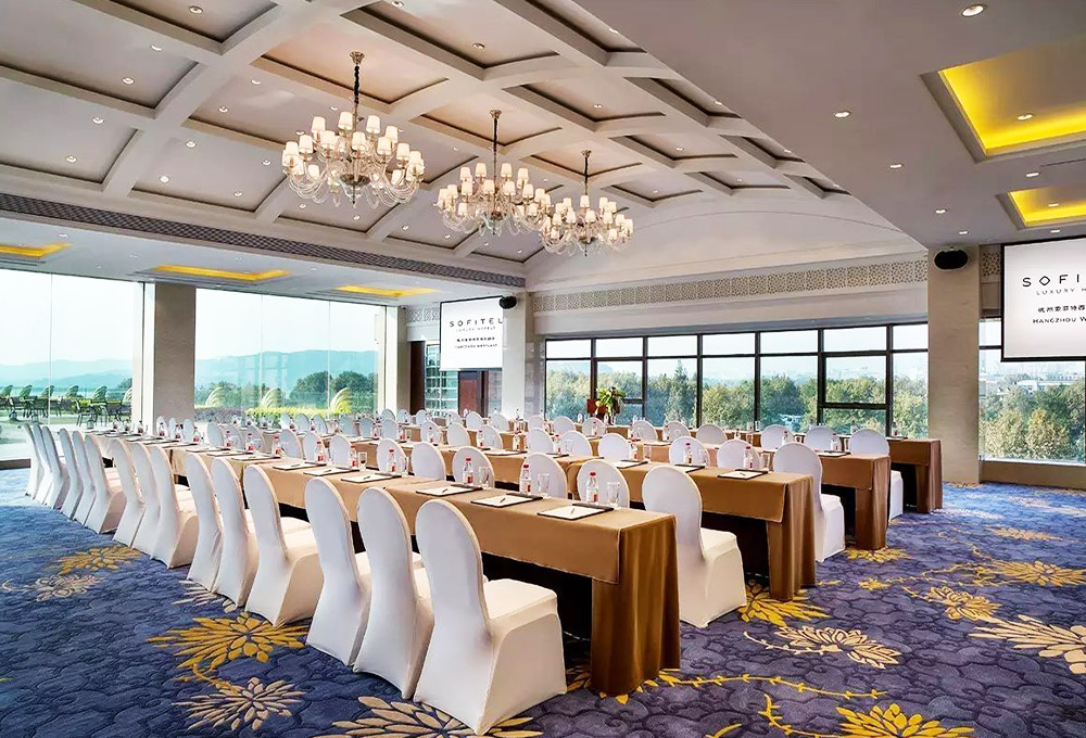 酒店擁有五個(gè)多功能會(huì)議室,最大會(huì)議室寶石廳可容納近200人。多功能宴會(huì)場(chǎng)地西湖廳擁有全杭州最美的西湖景致,是舉辦各類會(huì)議、宴會(huì)、婚禮的絕佳場(chǎng)所;鉆石露臺(tái)連接西湖廳,適合戶外露臺(tái)婚禮、各類派對(duì)和湖景攝影,是以西湖山水為背景的唯美戶外場(chǎng)地。