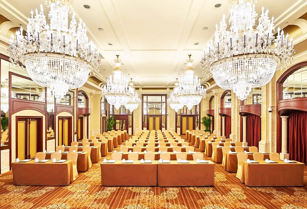 全球第一家擁有全方位、高科技智能體系的智能酒店。每個(gè)宴會(huì)廳均可為各種宴會(huì)提供高達(dá)1200平米的大型場(chǎng)地,七米的挑高空間設(shè)計(jì),盡顯高貴典雅氣質(zhì)。